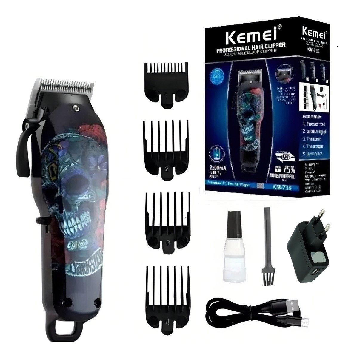 Cortadora De Pelo Kemei Km-2616 Inalámbrica Negro Profesional