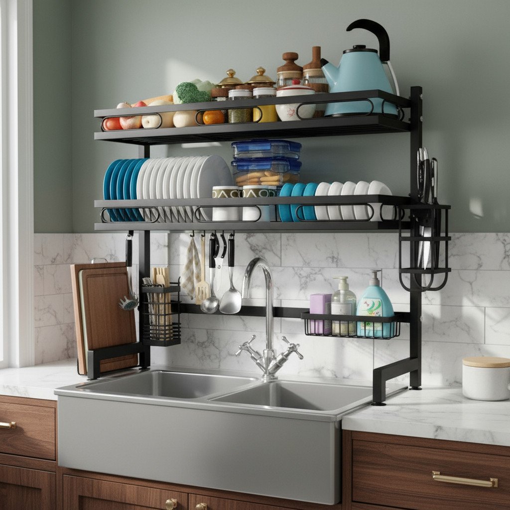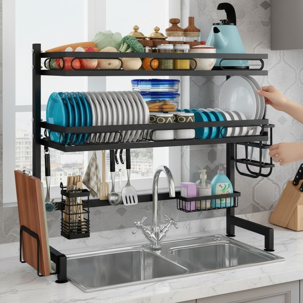 Escurridor Seca Platos 3 Niveles Cubiertos Fregadero – Uh