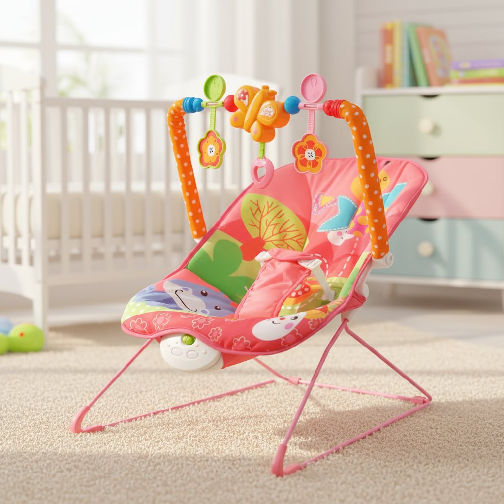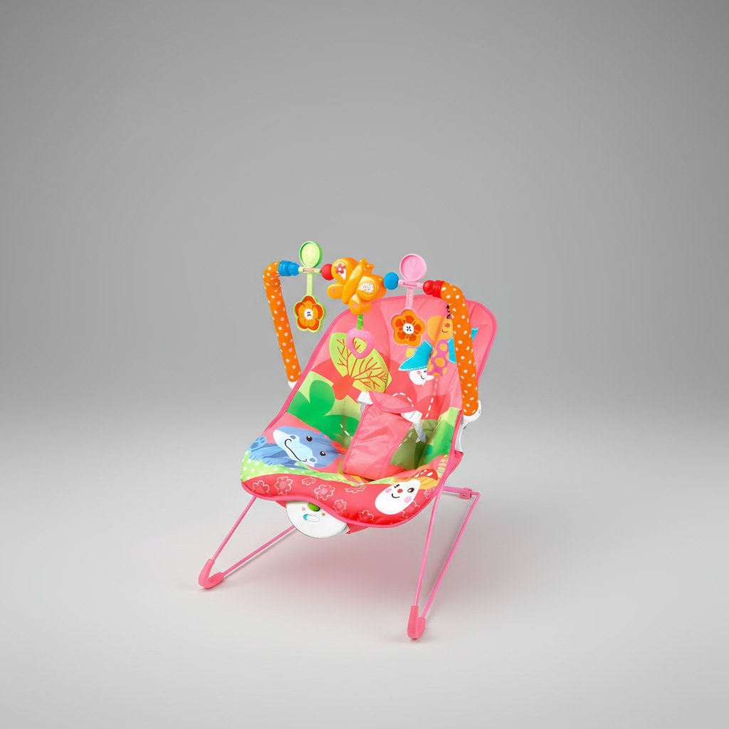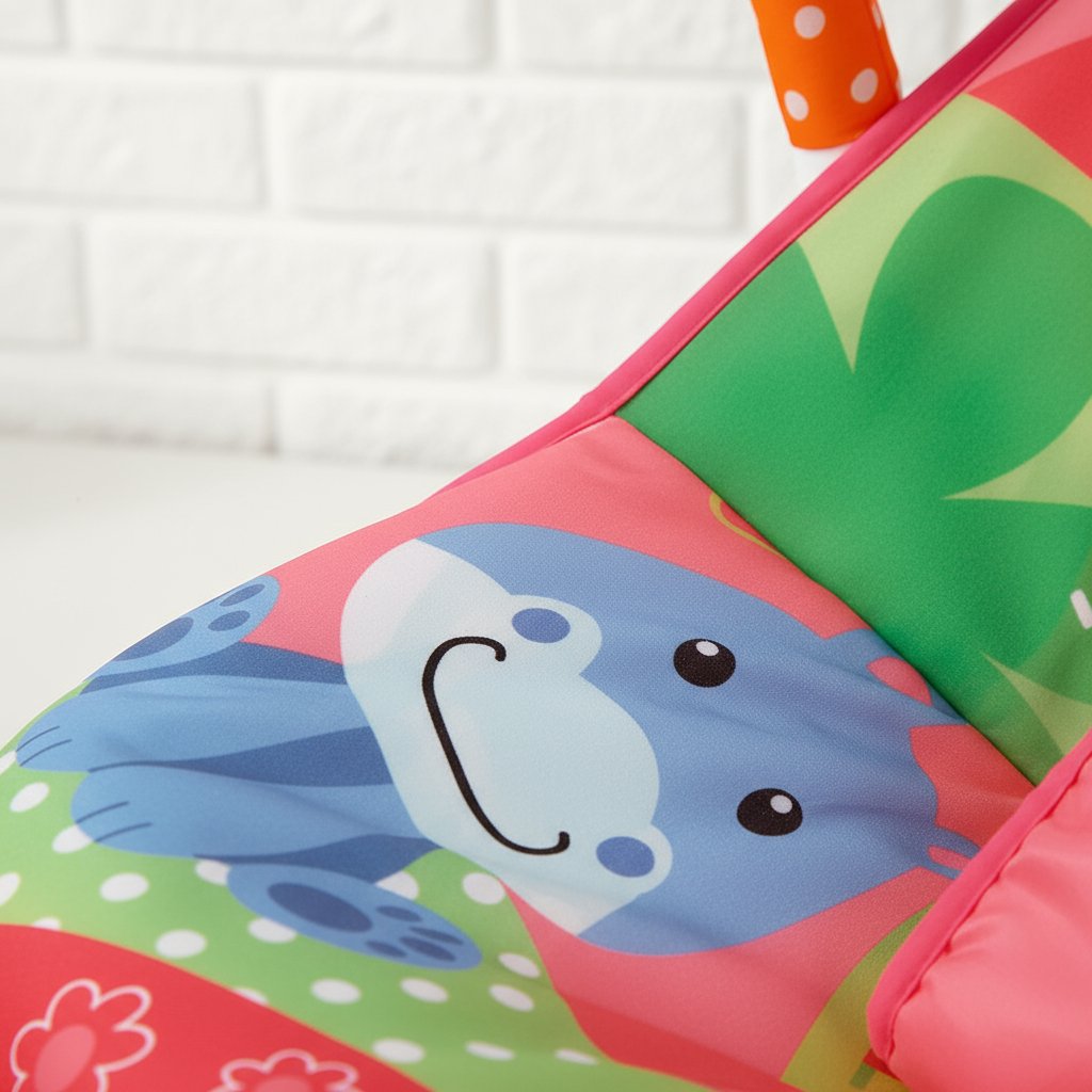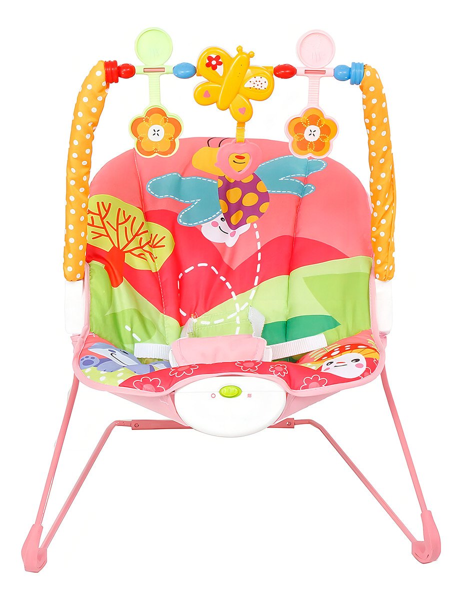 La silla mecedora para bebé ofrece comodidad y diversión con su diseño colorido de animalitos. Incluye una barra de juguetes para fortalecer las habilidades físicas del bebé, con la opción de sacarla y activar vibraciones. Además, su asiento de tela es acolchado y lavable, y su base cuenta con tacos de goma antideslizantes. Brinda todas las características esenciales para el juego y la comodidad del bebé.
