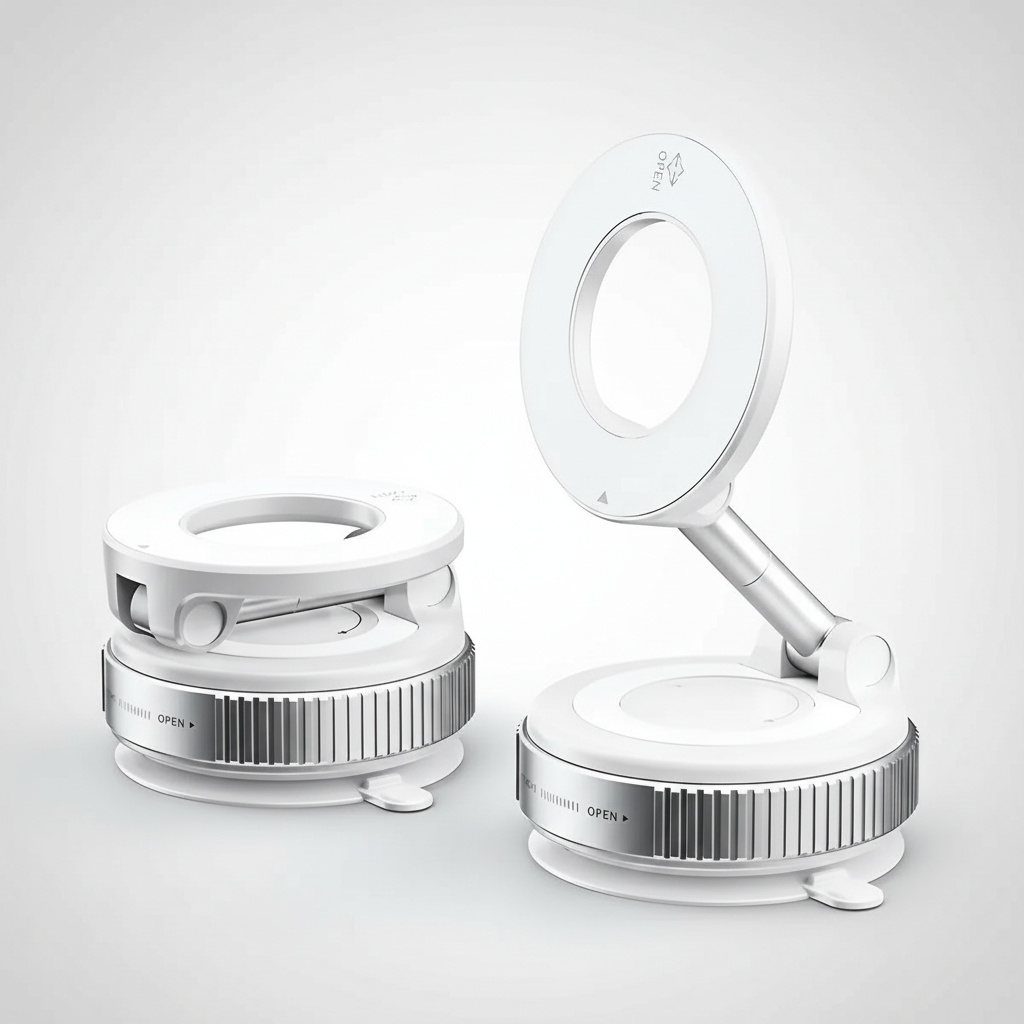 • Base de succión al vacío: Ofrece una fijación segura en superficies lisas como vidrio, metal o plástico, evitando deslizamientos o caídas accidentales.