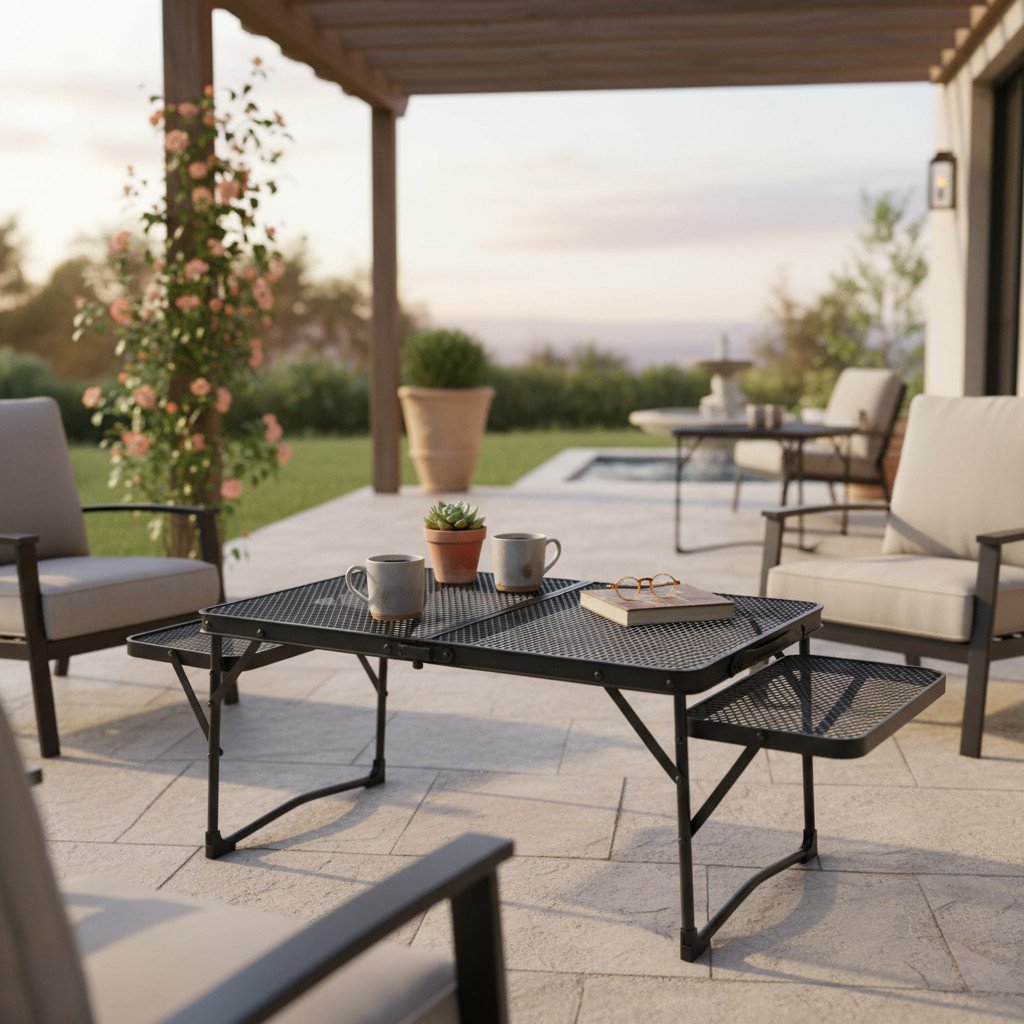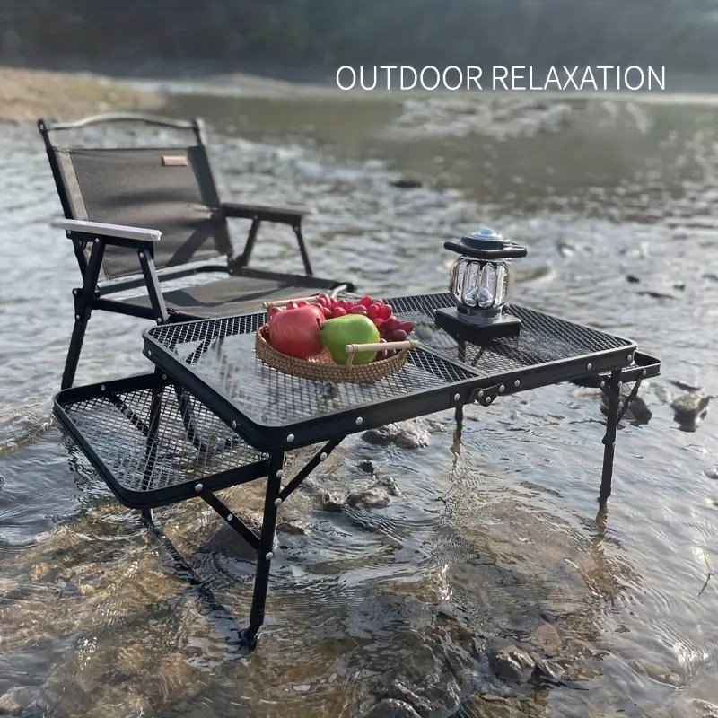 Mesa Plegable Para Acampar, Estante Portátil elaborado de aluminio ideal para el uso al aire libre como paseos de campamento, barbacoas en el jardín, paseos en la playa y mas.