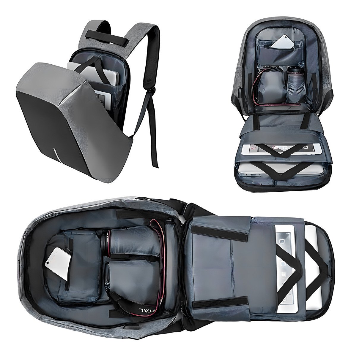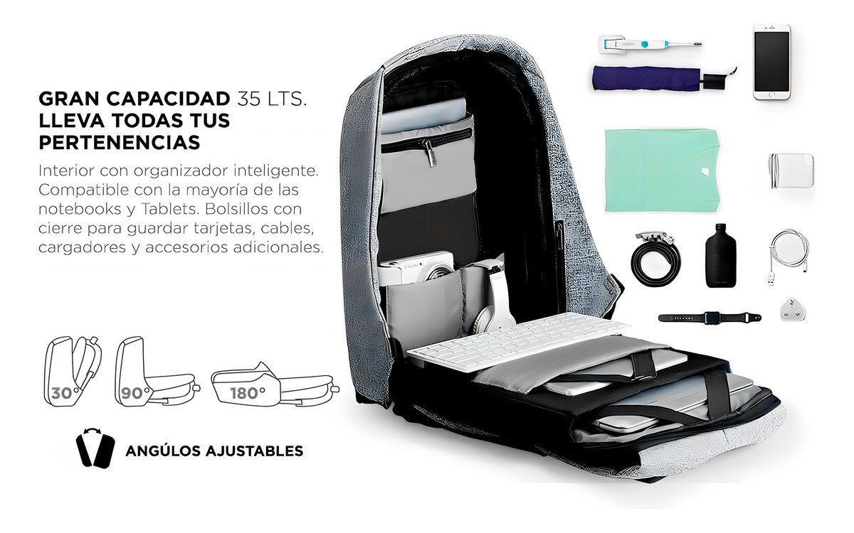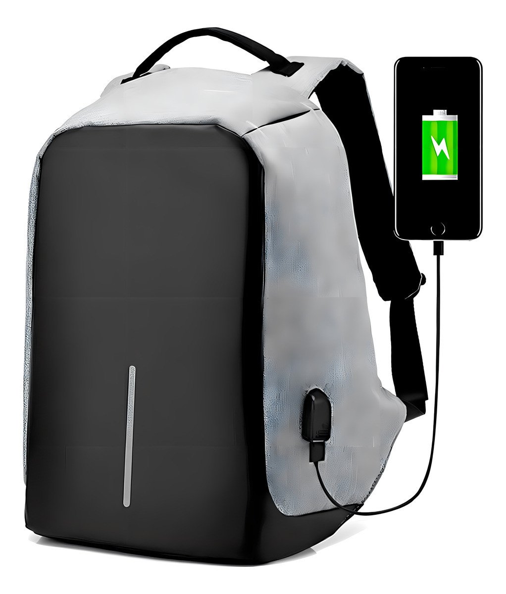 Mochila Anti Robo Impermeable Porta Notebook Con Salida Usb Para Conectar Smartphone Y Power Bank Gris