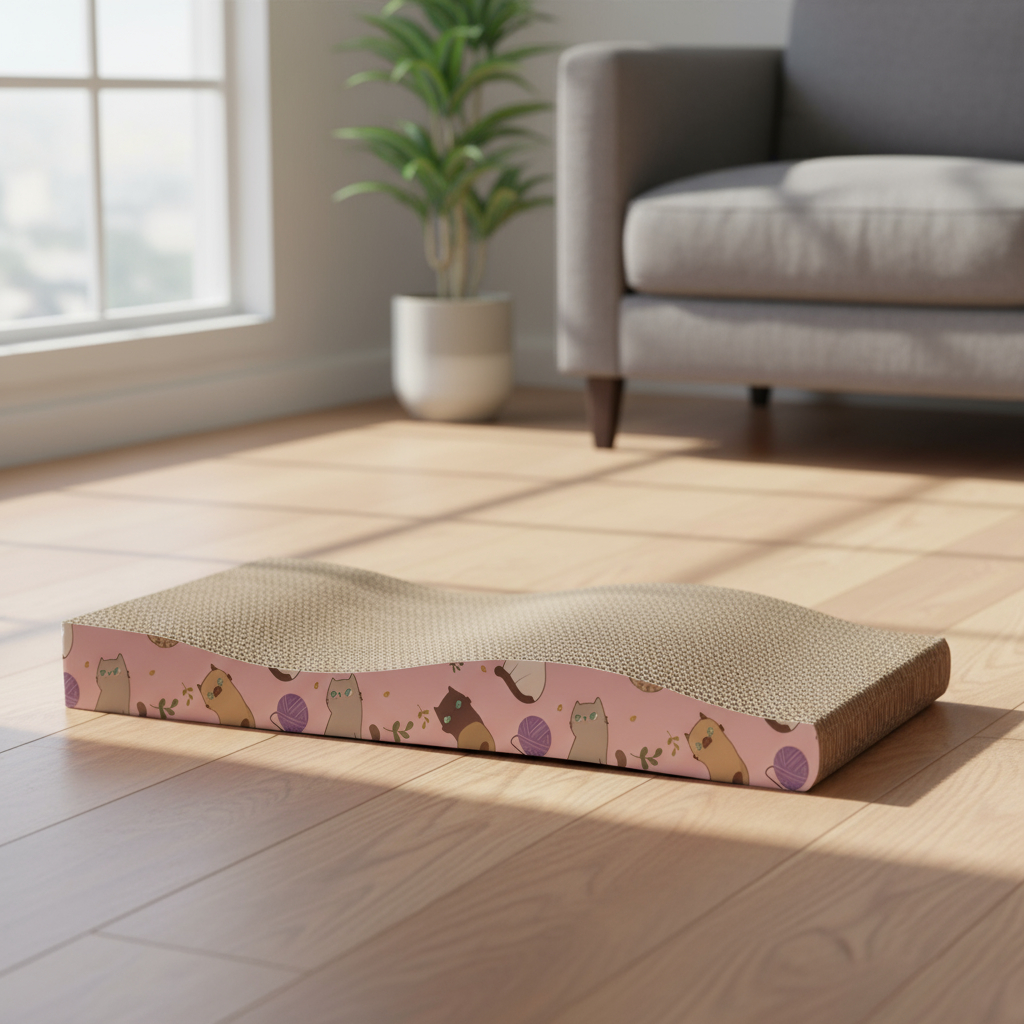 La tabla rascadora para gatos es resistente al desgaste y a los arañazos, y se puede utilizar para las garras diarias de los gatos para aliviar el estrés. debido a la adopción de apariencia minimalista, las características del producto con fácil uso.